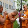 เวลา ๑๐.๐๐ น. พระสงฆ์ ๑๐๘ รูป สวดถวายพรพระ ออกรับบิณฑบาต