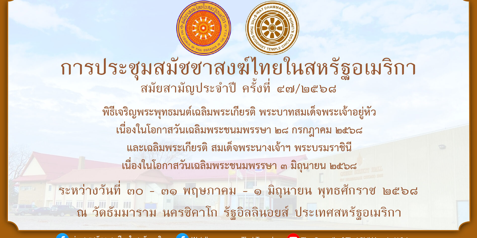 วันศุกร์ที่ ๓๐ พฤษภาคม พ.ศ. ๒๕๖๘ ประชุมสมัชชาสงฆ์ไทยในสหรัฐอเมริกา สมัยสามัญประจำปี ครั้งที่ ๔๗/๒๕๖๘