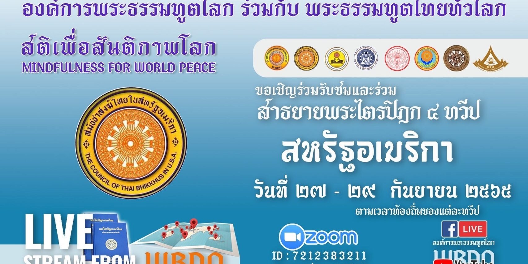 สมัชชาสงฆ์ไทยในสหรัฐอเมริการ่วมกับองค์การพระธรรมทูตโลกและเครือข่ายพระธรรมทูตทั่วโลกร่วมกันสาธยายพระไตรปิฏกออนไลน์ 4 ทวีป วันที่ 20-29 กันยายน 2565 ซึ่งสมัชชาสงฆ์ไทยในสหรัฐอเมริกาจัดสาธยาย 3 วัน คือ วันที่ 27-29 กันยายน 2565 ปีนี้สาธยายมหาสติปัฏฐานสูตร