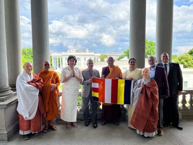 ฉลองวันวิสาขบูชาที่ทำเนียบประธานาธิบดีสหรัฐอเมริกา โดยคณะกรรมการบริหารองค์กรสมาคมชาวพุทธนานาชาติแห่งสหรัฐอเมริกา (International Buddhist Association of America (IBAA) โดยมี พระวิเทศรัตนาภรณ์ รองประธานฝ่ายบริหารองค์กร เป็นผู้แทนชาวพุทธเถรวาท