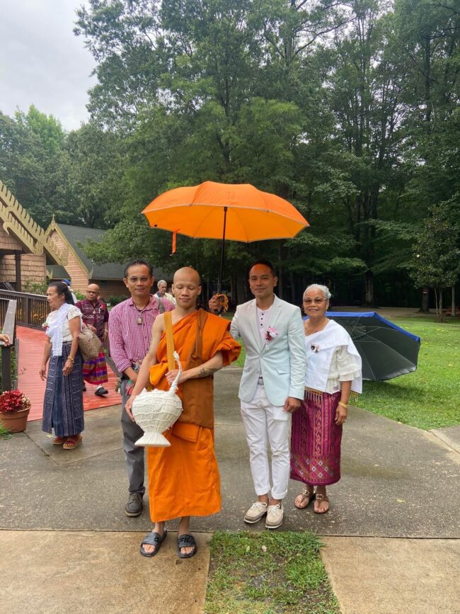 คุณสุดใจ ใจขม พร้อมครอบครัว นำบุตรชายคือ คุณจตุพล ใจขม มาฝากไว้ในพระพุทธศาสนาบวชพระ ณ อุโบสถวัดป่าสันติธรรม รัฐเวอร์จีเนีย