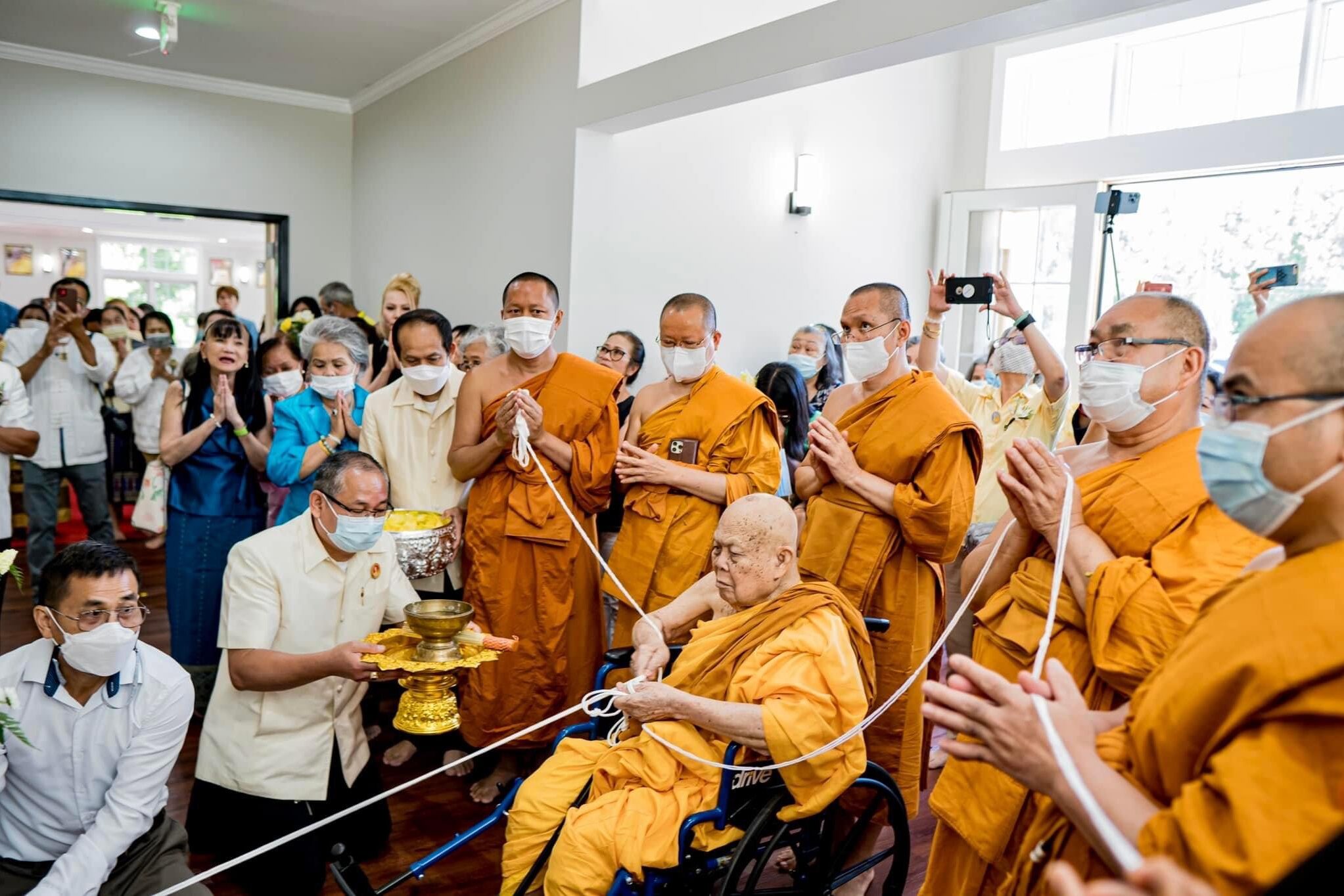 พระวิเทศสิทธิธรรมาภรณ์ รองประธาน และพระครูรัตนปัญญาวิเทศ รองเลขาธิการสมัชชาฯ เยี่ยมอาการอาพาธของพระครูศรีภาวนาวิเทศ พระธรรมทูตวัดธัมมาราม ชิคาโก เพื่อให้กำลังใจ