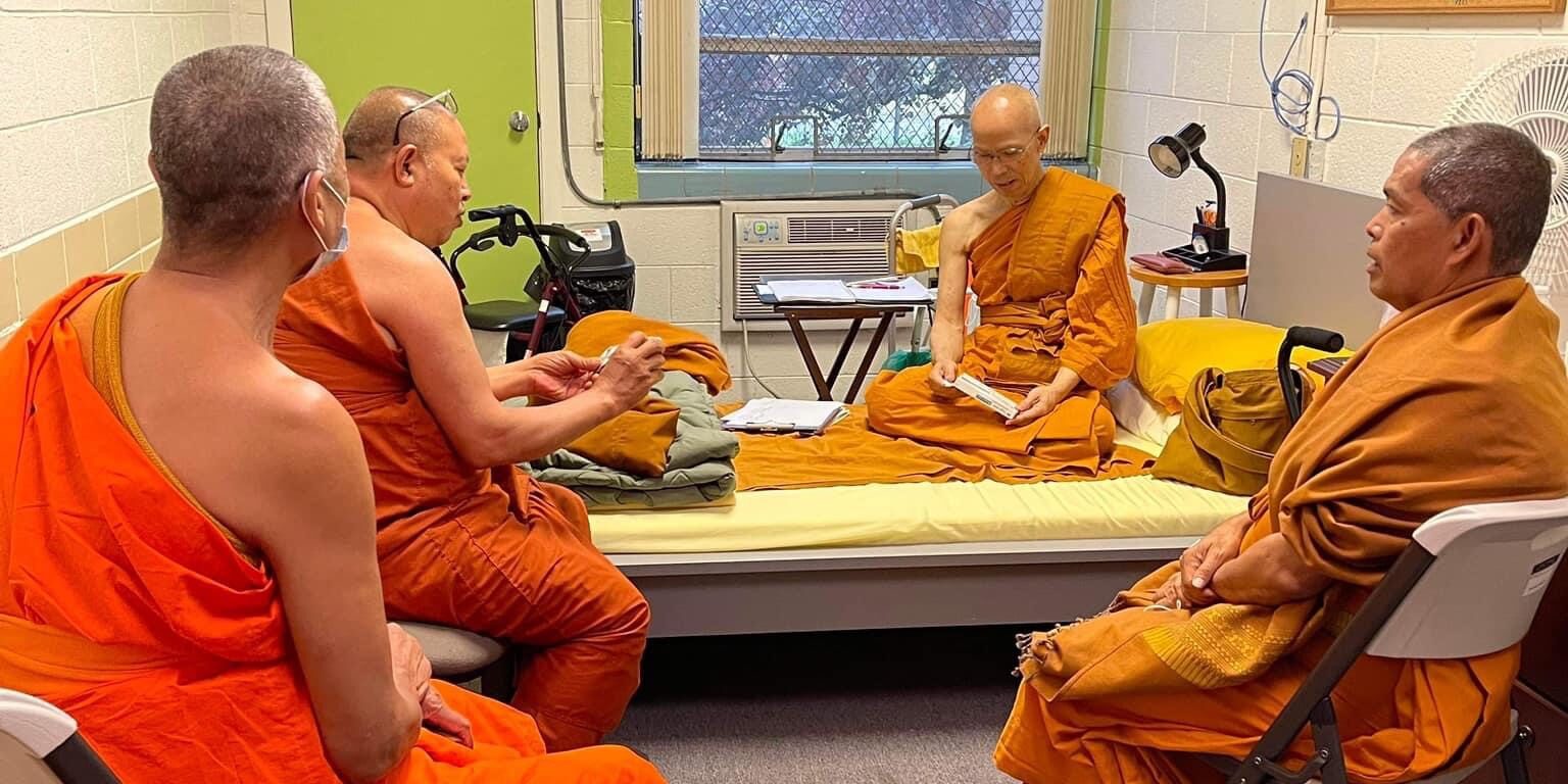 พระวิเทศสิทธิธรรมาภรณ์ รองประธาน และพระครูรัตนปัญญาวิเทศ รองเลขาธิการสมัชชาฯ เยี่ยมอาการอาพาธของพระครูศรีภาวนาวิเทศ พระธรรมทูตวัดธัมมาราม ชิคาโก เพื่อให้กำลังใจ