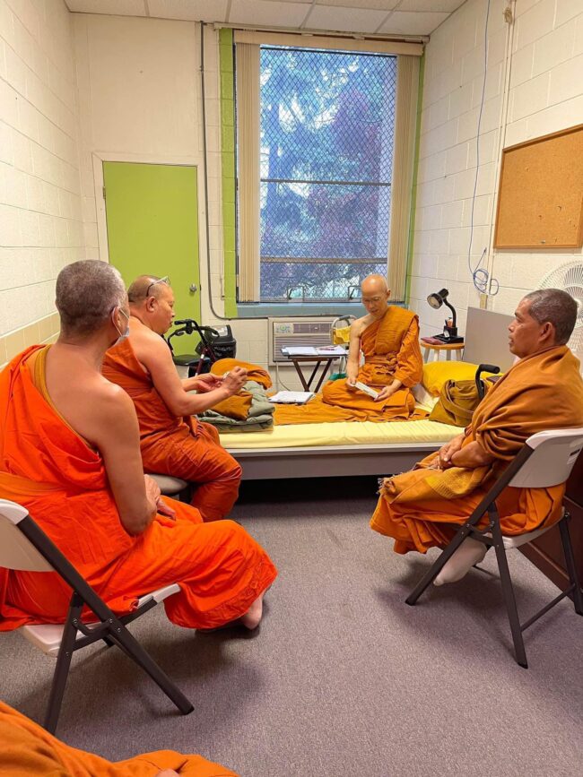 พระวิเทศสิทธิธรรมาภรณ์ รองประธาน และพระครูรัตนปัญญาวิเทศ รองเลขาธิการสมัชชาฯ เยี่ยมอาการอาพาธของพระครูศรีภาวนาวิเทศ พระธรรมทูตวัดธัมมาราม ชิคาโก เพื่อให้กำลังใจ